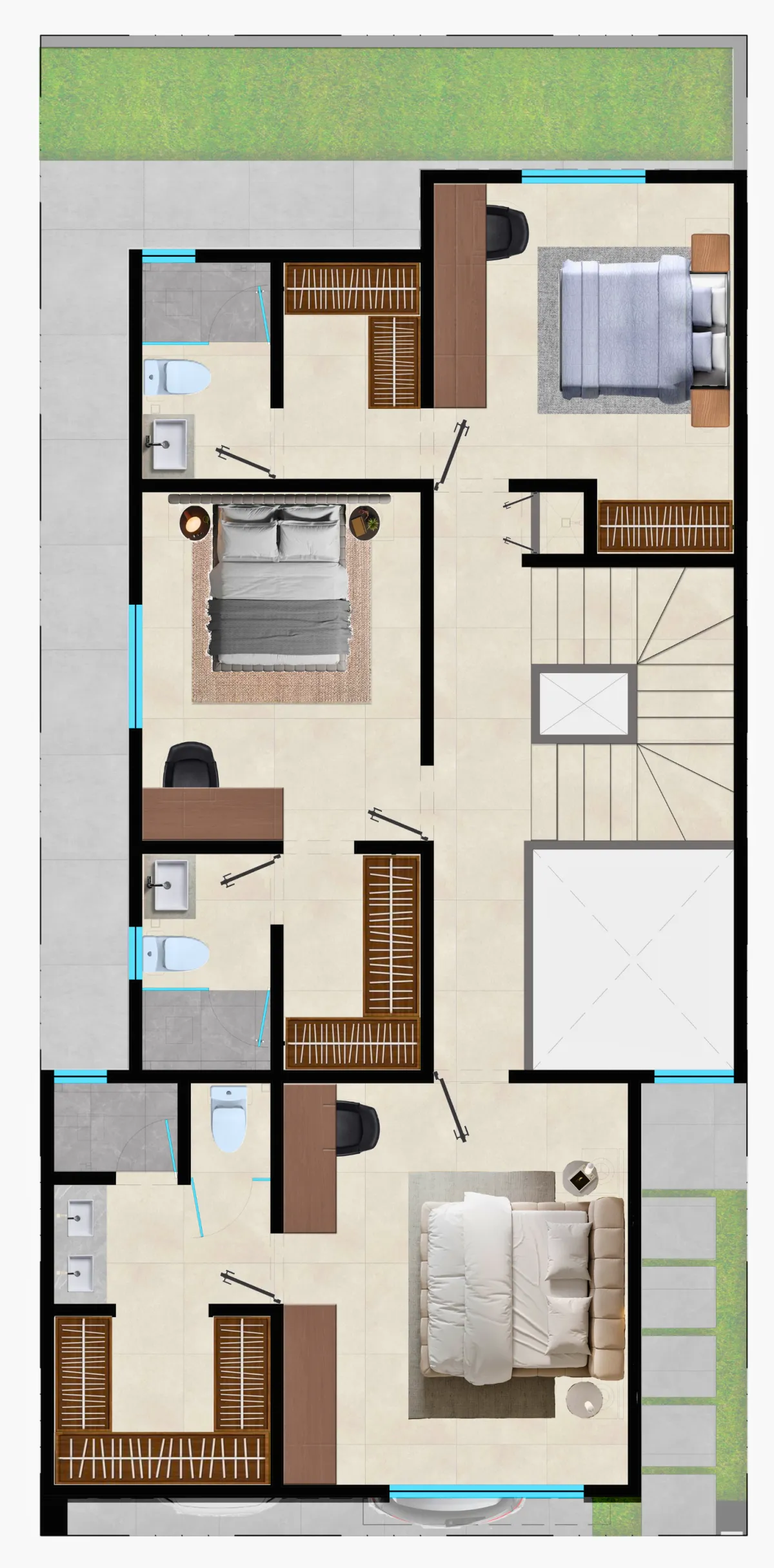 +Dos recámaras secundarias, cada una con su propio baño y vestidor