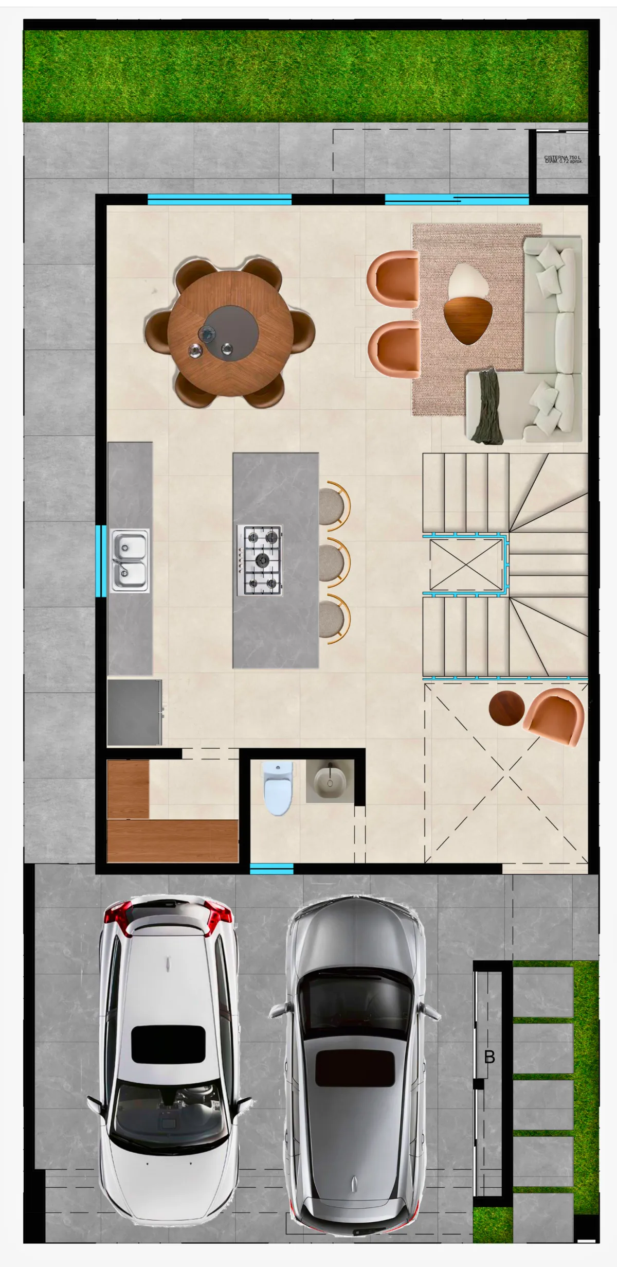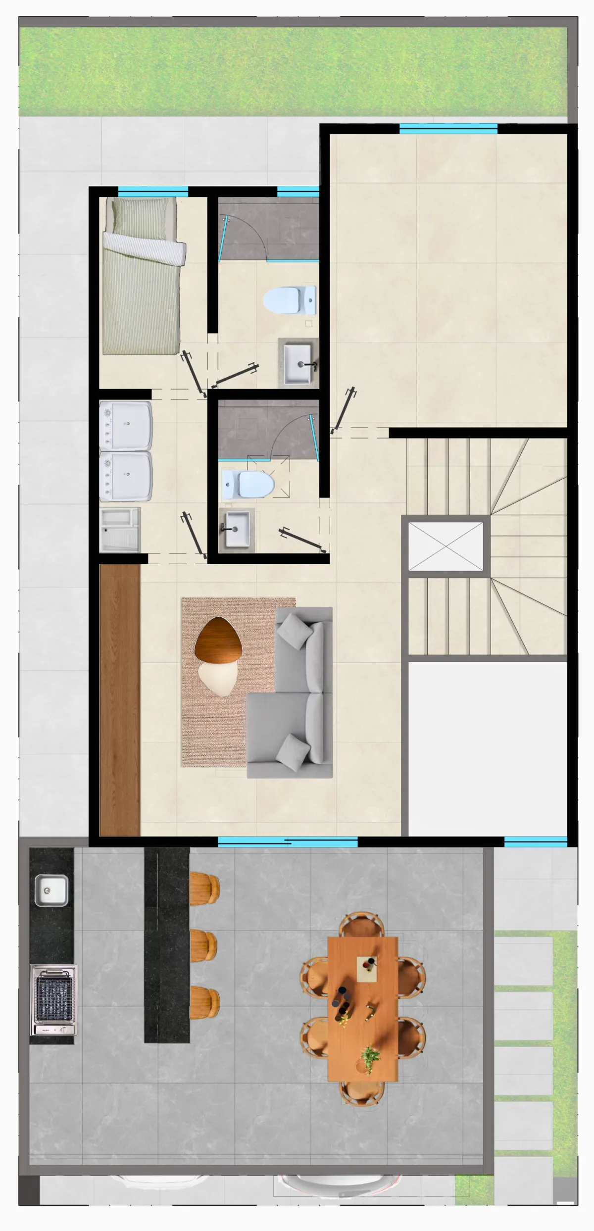 + Área Flex para 4ta. recamara, bodega o estudio